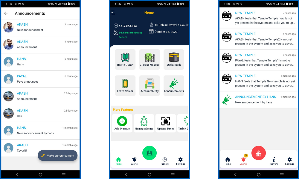 The Religious Assistant app caters to the needs of Muslim and Hindu users. It offers various features including; locating the nearest Mosques and Temples, precise Namaz timings per mosque, track Qaza Namaz, missed fasts, and Zakat. For children it offers "learn Namaz through engaging games". Other features include Qibla direction information, alerts for veg and non-veg days, and notifications for funeral activities, Eid Namaz, and donation collections.